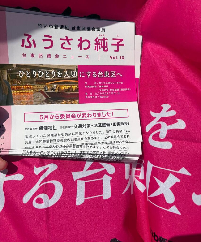 大事な国政選挙中に視察が重なり、体がいくつも欲しい状況でした。今回の選挙では、東京都内の公営掲示板ポスターのリーダー、及び比例カーを担当させていただきました。暑い日々の中、多くのボランティアさんが活躍してくださり、ご協力に感謝しています。引き続き、支持政党に関わらず、皆の生活と命が最優先される区政になるよう邁進していきます。