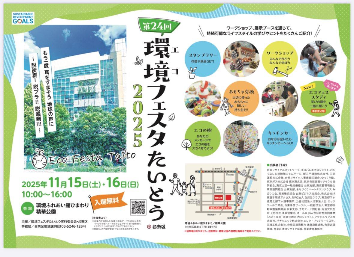 今年は環境ふれあい館と精華公園での開催です。環境問題に取り組む企業さんの事業は様々。東京ガスさんは海洋プラスチック削減、アサヒ飲料さんはコーヒーカスを利用したタンブラー作成など取り組んでいます。台東区には、パンダが食べ残した笹の葉を使った製品の開発などユニークな会社もあります。子ども達も楽しそうにクイズを出したりスタンプ押したりしてくれました。