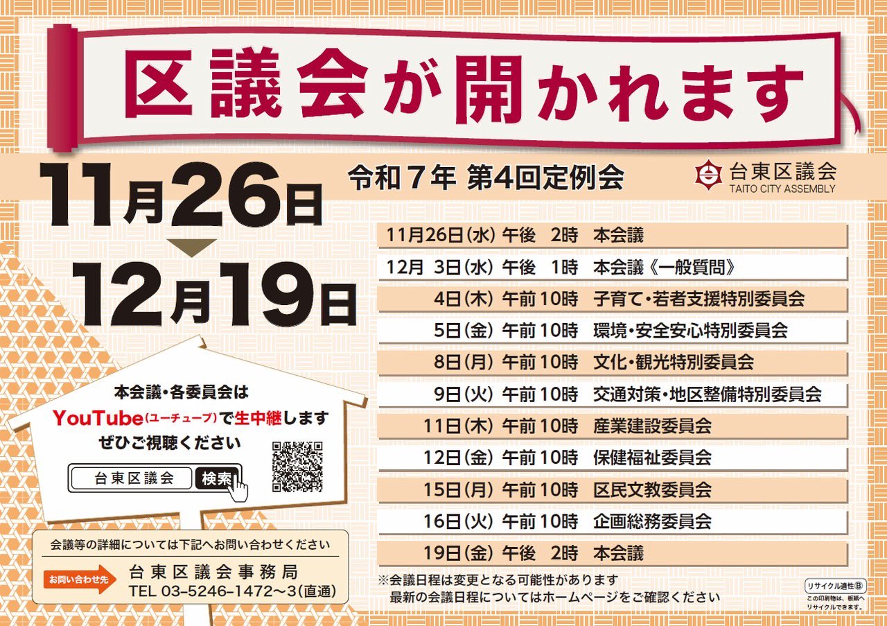 10月末に第3回定例会が終わり、11/26から第4回定例会が開催されています。11/2からの葛飾区議会議員選挙にも関わり、慌ただしい日々となりました。一般質問、委員会は12月になりますので、次回に報告いたします。